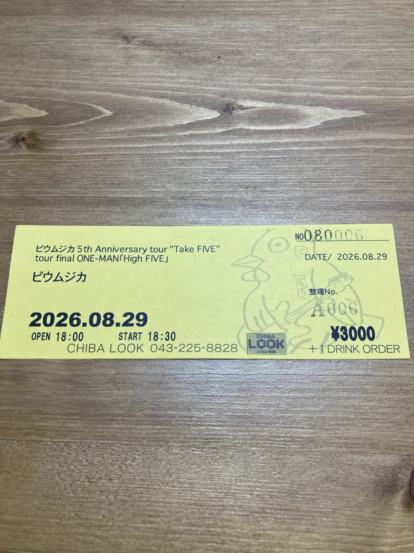 ピウムジカ5th Anniversary tour “Take FIVE” tour final ONE-MAN 「High FIVE」手売りチケット